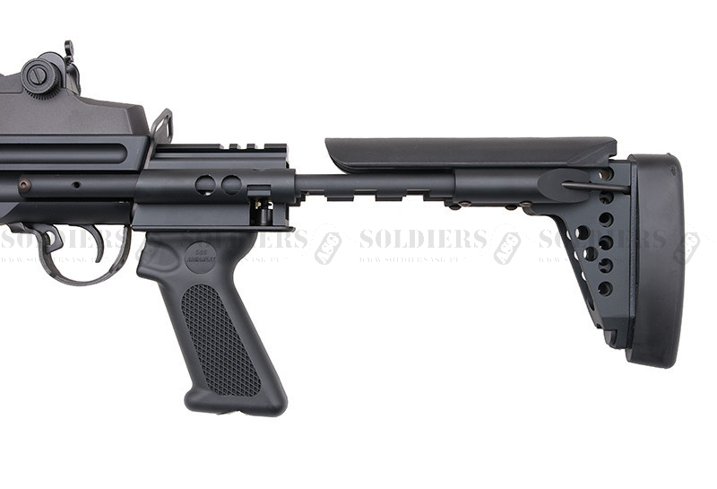 Replika idealnie nadaje się do prowadzenia działań na średnim i dalekim dystansie ze względu na zastosowaną sprężynę M120 zapewniającą prędkość wylotową rzędu ~410 FPS, oraz długą 407 mm lufę wewnętrzną. W środku znajduje się szczelny układ pneumatyczny, zaopatrzony w wysokiej klasy komorę i gumkę HU.