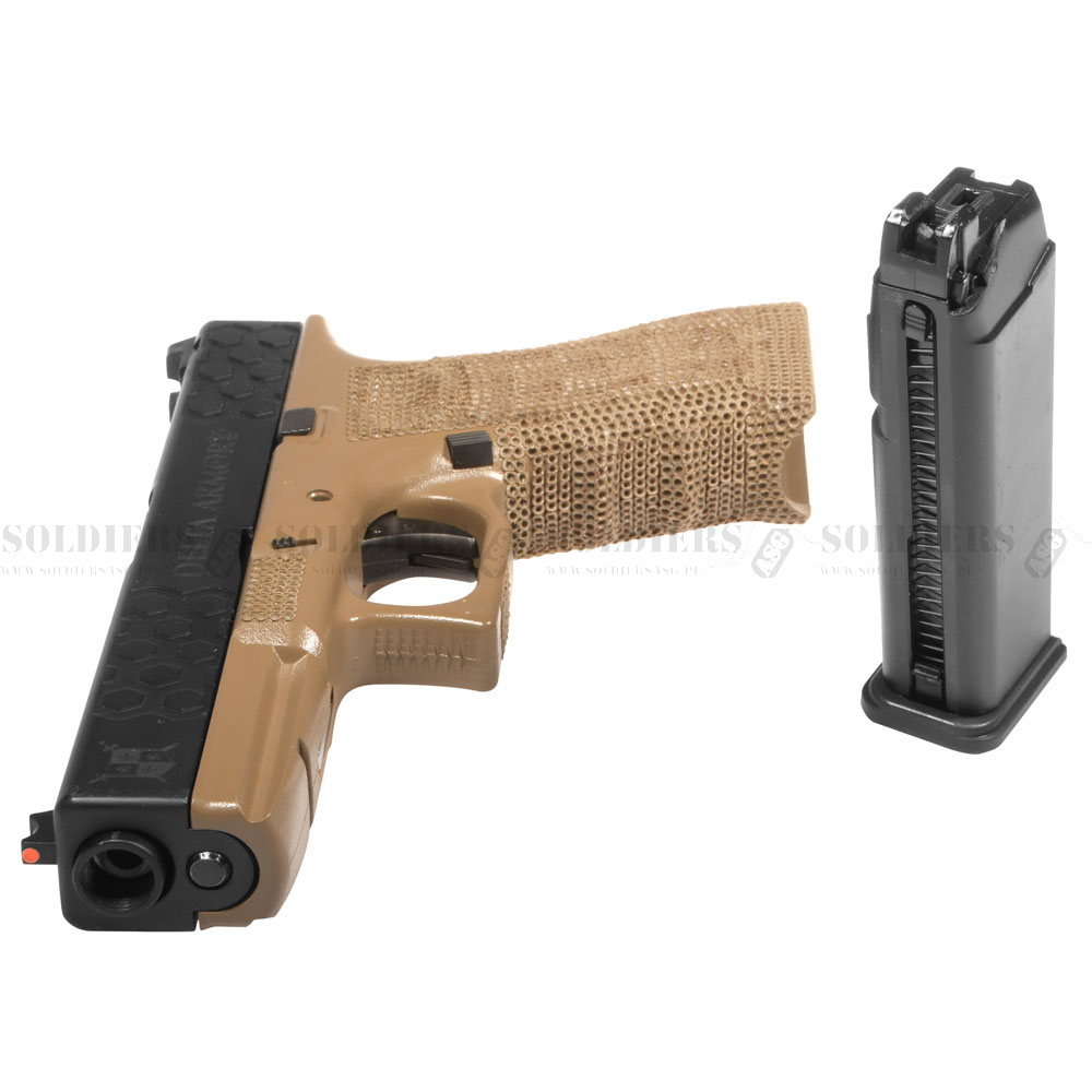 Pistolet ma metalowy zamek, który jest obrabiany na precyzyjnych maszynach CNC. Chwyt pistoletu posiada ręcznie wykonany stippling, poprawiający przyczepność. Służy nie tylko do estetycznego odróżnienia się od innych, ale głównie jako praktyczne szorstkowanie chwytu dla lepszej obsługi.