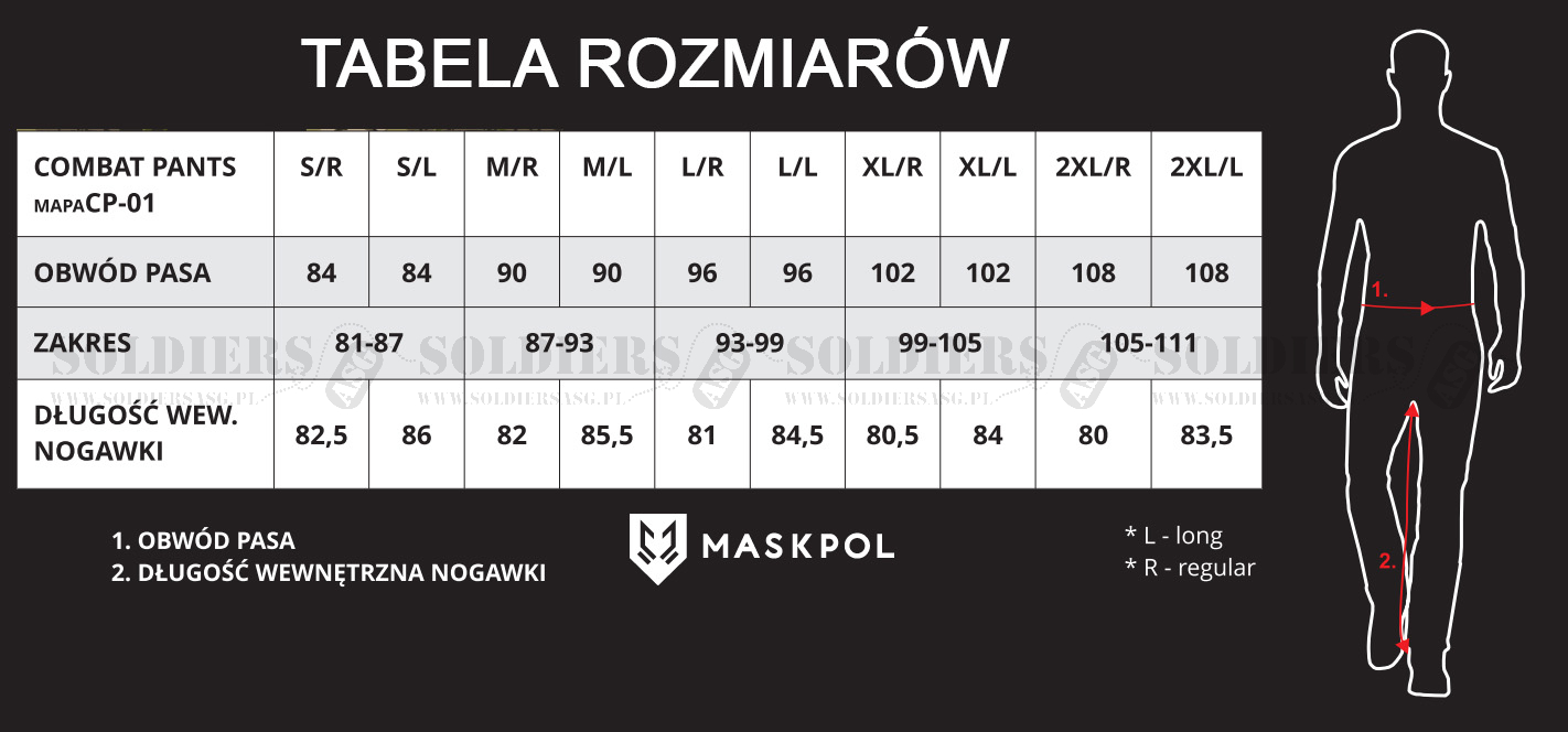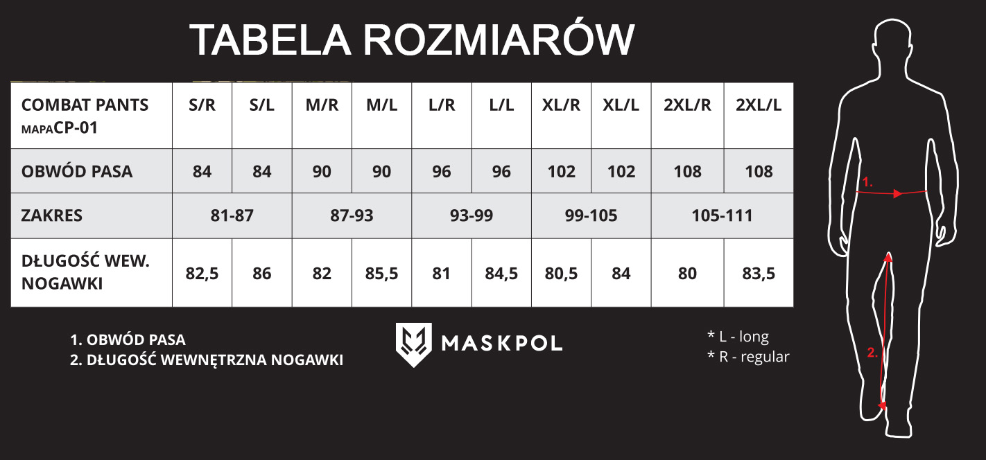 Kolekcja umundurowania taktycznego produkcji MASKPOL SA, oferuje użytkownikowi prosty, klasyczny krój połączony z unikatowym, jedynym na rynku typem nadruku maskującego) MAPA®. Do tego, jeden z najbardziej wytrzymałych i trwałych materiałów dostępnych na rynku tkanin do zastosowań militarnych, tkaninę mundurową wykonaną w 50% z bawełny i 50% z wytrzymałego poliestru, wzmocnioną splotem rip-stop.