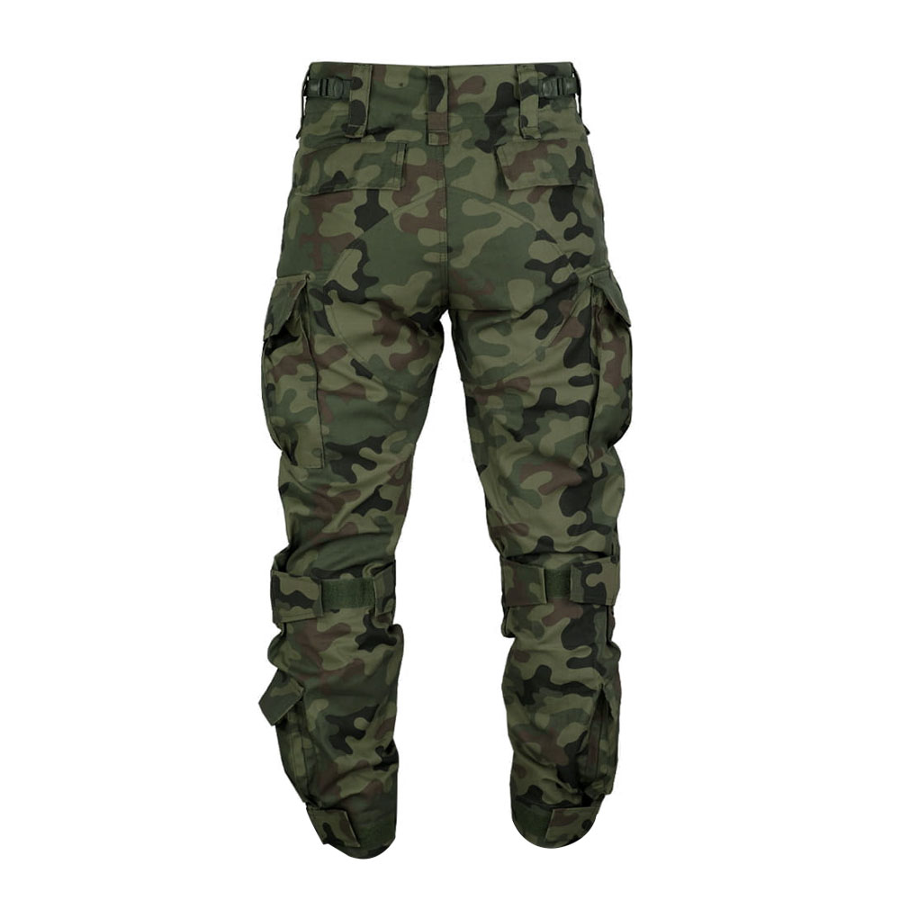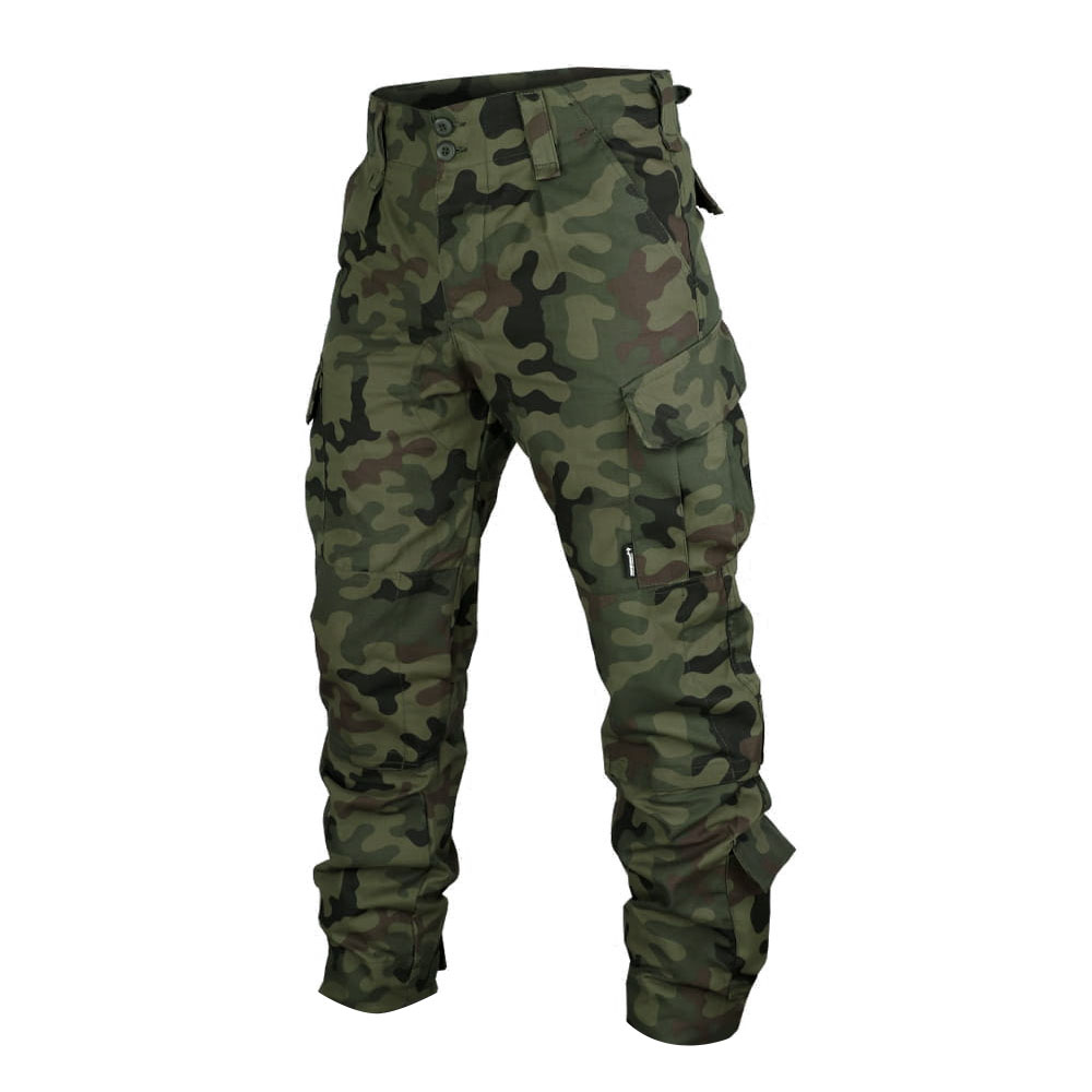 Spodnie uszyte zostały z wytrzymałej mieszanki bawełny (56%) oraz poliestru (44%) o wytrzymałym splocie Rip-Stop, która przepuszcza powietrze, co sprawia, że spodnie są idealne na wysokie letnie temperatury.