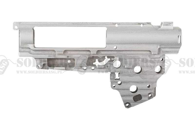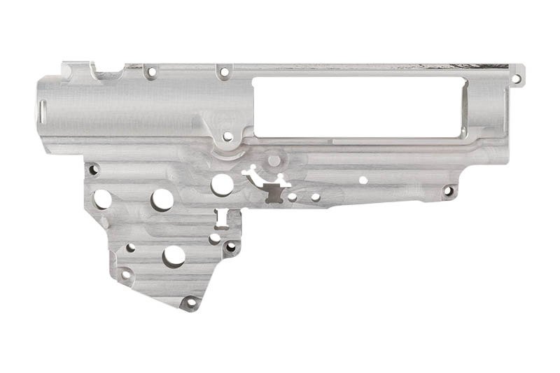 Ekstremalnie wytrzymały, wzmocniony szkielet gearboxa, przeznaczony do montażu w replikach wyposażonych w gearbox v.3. Szkielet wykonany został w technologii CNC z trwałego aluminium 7075 T6. Szkielet został przystosowany do instalacji łożysk o średnicy 8mm. Szkielet posiada system QSC, który pozwala na szybką wymianę sprężyny.