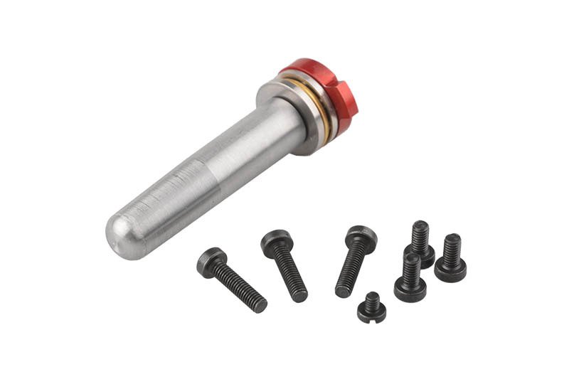 W zestawie komplet śrub montażowych oraz aluminiowa, łożyskowana prowadnica sprężyny QSC.