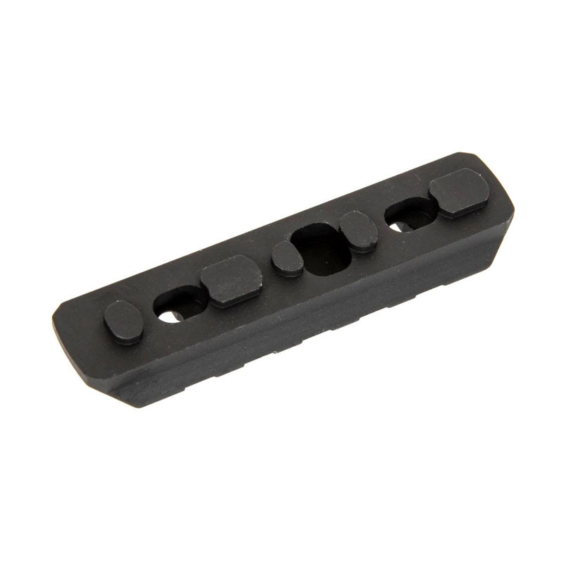 Odcinek szyny RIS wykonany z aluminium obrabianego na maszynach CNC. Posiada montaż kompatybilny ze standardem MLok.