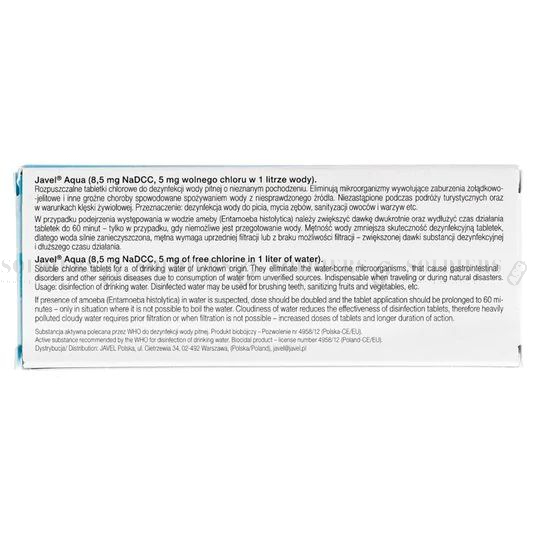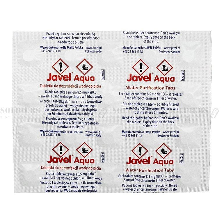 Rozpuszczalne tabletki chlorowe pozwalające na uzdatnienie wody, której pochodzenie jest nieznane lub wątpliwe. Eliminują znajdujące się w wodzie mikroorganizmy, powodujące zaburzenia żołądkowo-jelitowe.
