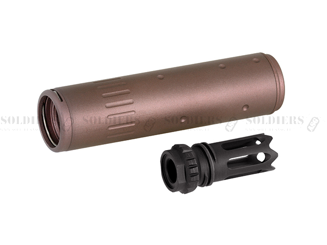 Tłumik dźwięku firmy Big Dragon wykonany z wysokiej jakości aluminium. W zestawie znajduje się tłumik płomienia posiadający zewnętrzny gwint pozwalający na szybki montaż tłumika dźwięku. Wykonany ze stali tłumik płomienia posiada lewoskrętny gwint o średnicy 14 mm.