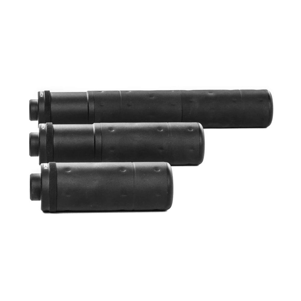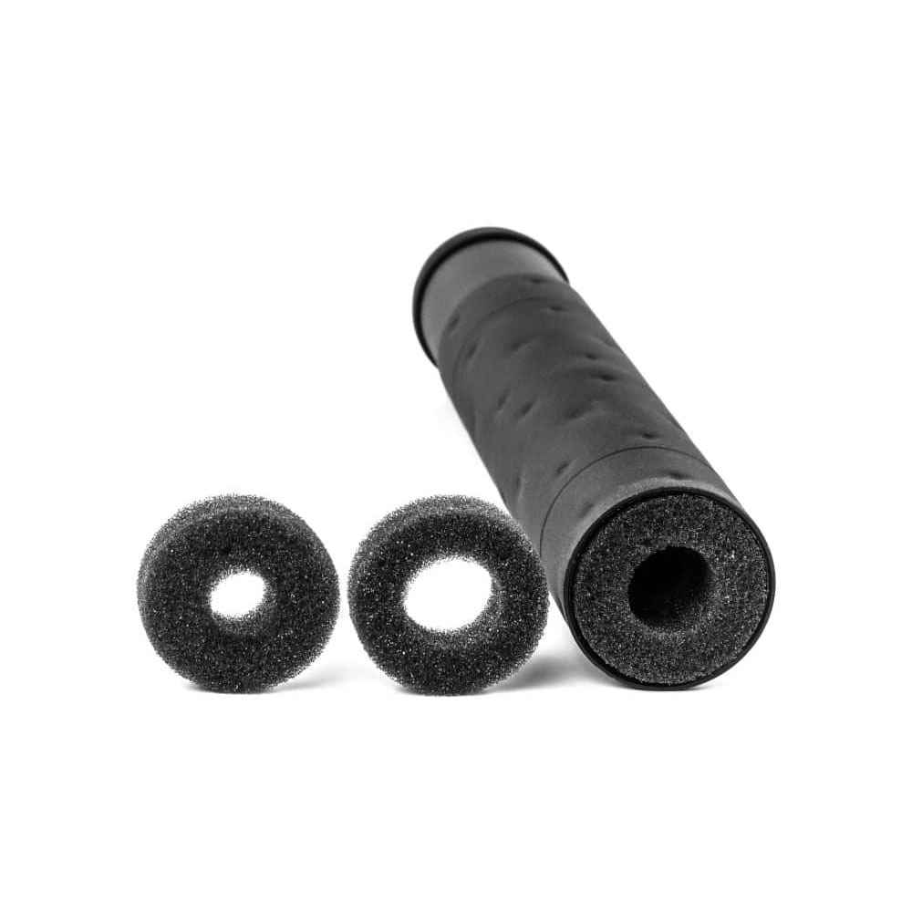 Tłumik stworzony pod SSX23 z 16mm gwintem CW. Posiada on jednak adapter na gwinty 14mm CCW w zestawie. Dzięki wypełnieniu pianką akustyczną tłumik ten skutecznie wyciszy większość replik, a dzięki jego modułowości możemy dostosować jego długość do takiej z jaką czujemy się najwygodniej.