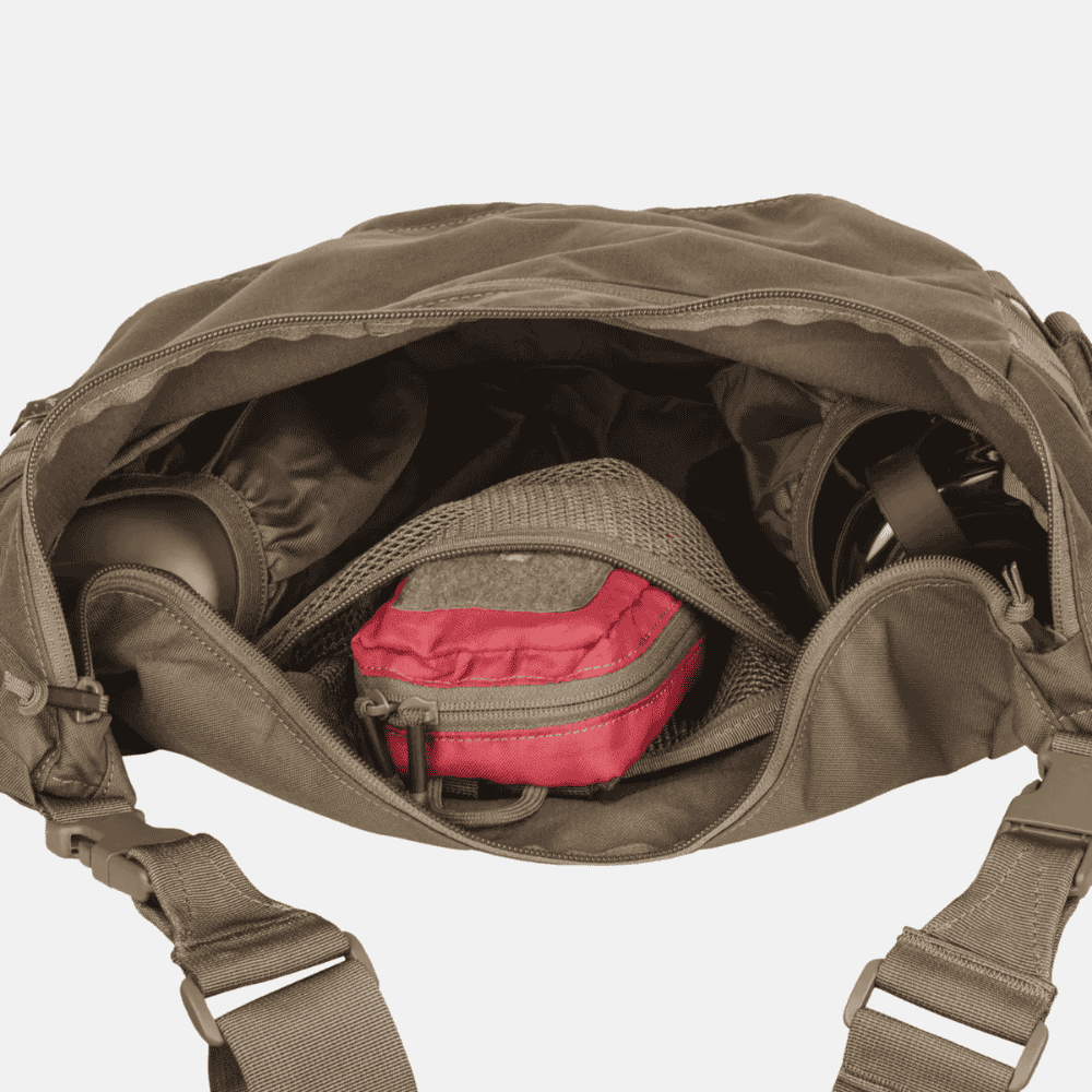 Dużą zaletą modelu jest regulowany pas nośny mocowany na klamry, który można w razie potrzeby wypiąć i zastąpić innym. Po bokach torby znajdują się przelotowe taśmy w systemie MOLLE/PALS , umożliwiające troczenie dodatkowego wyposażenia. Rozwiązanie to znacząco zwiększa funkcjonalność torby w terenie, pozwalając dostosować ją do indywidualnych potrzeb użytkownika.