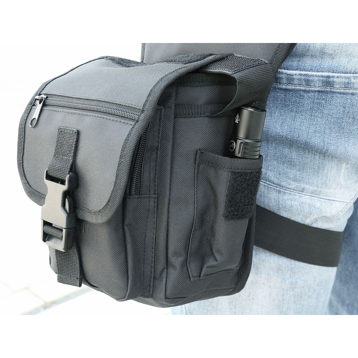 Praktyczna torba udowa Side Kick niemieckiej marki Brandit. Mocowana jest do tułowia i nogi pasami z regulacją długości zapinanymi kompozytowymi klamrami typu fastex. Klamry umożliwiają szybkie zdjęcie torby. Dodatkowo elastyczny pas udowy można zdemontować. Torba wykonana została z wytrzymałego i odpornego na przetarcia powlekanego poliestru 600D.