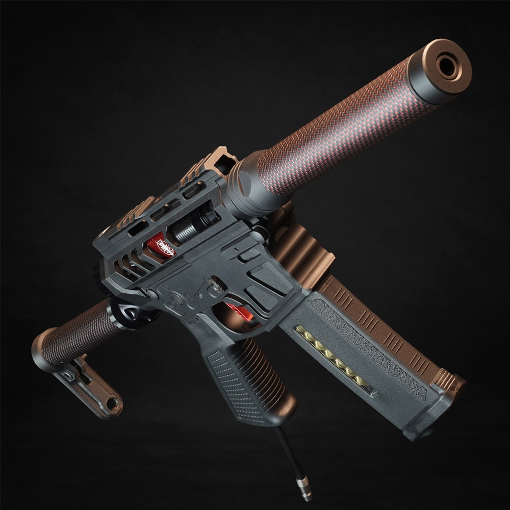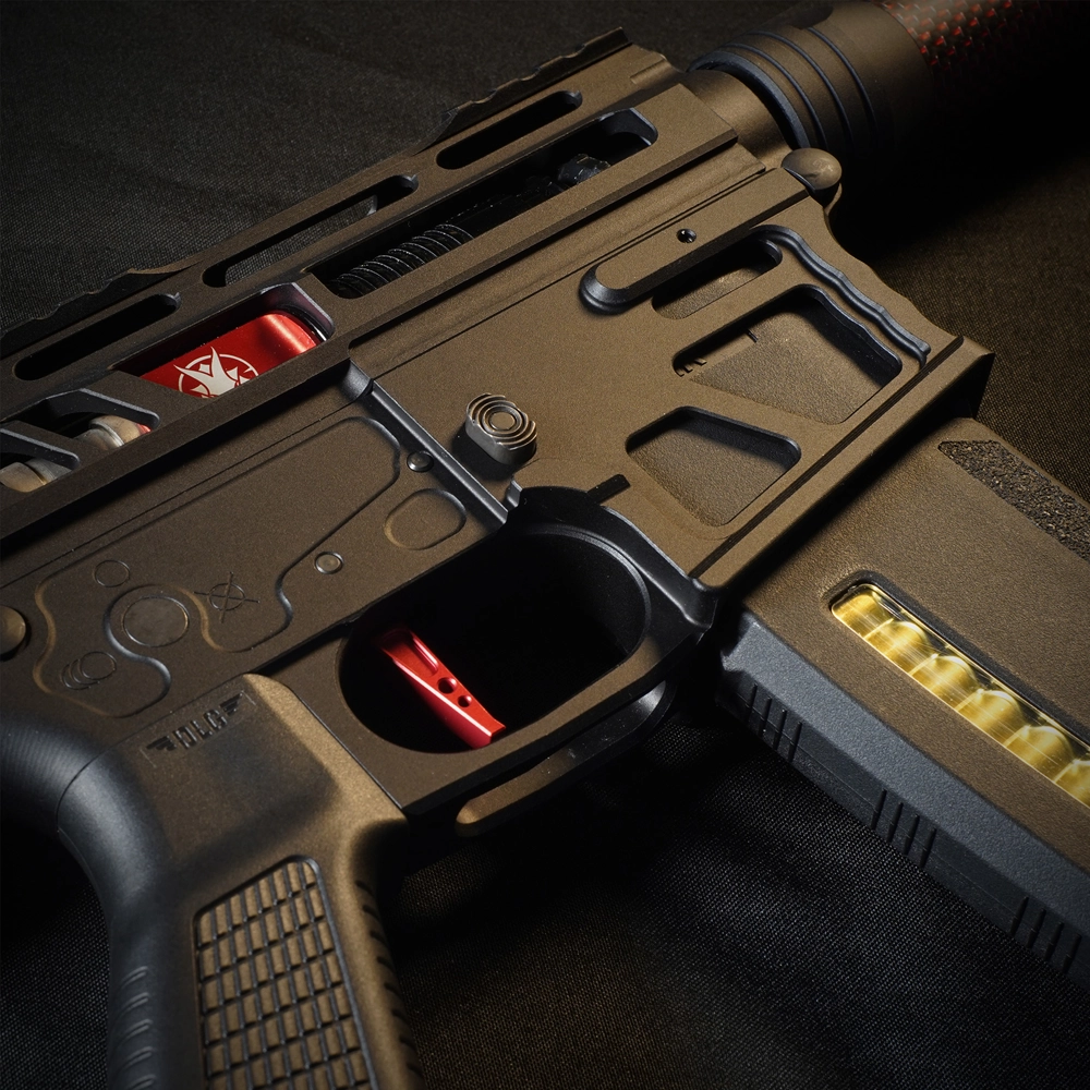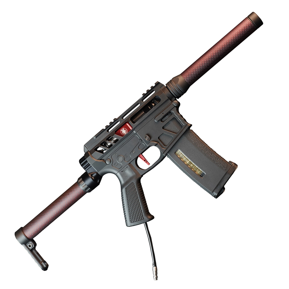 Heretic Labs Article III to najnowsze narzędzie stworzone z myślą o graczach speedsoftu, którzy wymagają maksymalnej zwrotności i wytrzymałości. Konstrukcja łączy w sobie czerwoną lufę z włókna węglowego o długości 8 cali, nowy adapter kolby oraz kolbę z włókna węglowego, co nadaje replice nie tylko agresywny wygląd, ale także wyjątkową lekkość i sztywność. Charakterystyczne karmazynowe akcenty podkreślają jej dynamiczny styl, a w sercu repliki pracuje silnik INFERNO Gen2 z dedykowanym oprogramowaniem Heretic Labs.