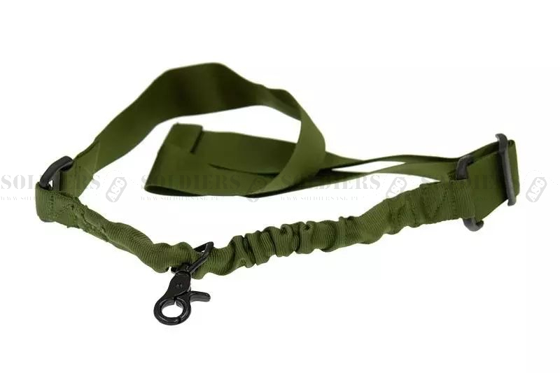 Jednopunktowy pas nośny typu bungee o regulowanej długości, wykonany z trwałego nylonu. Mocowany przy pomocy metalowego karabinka.