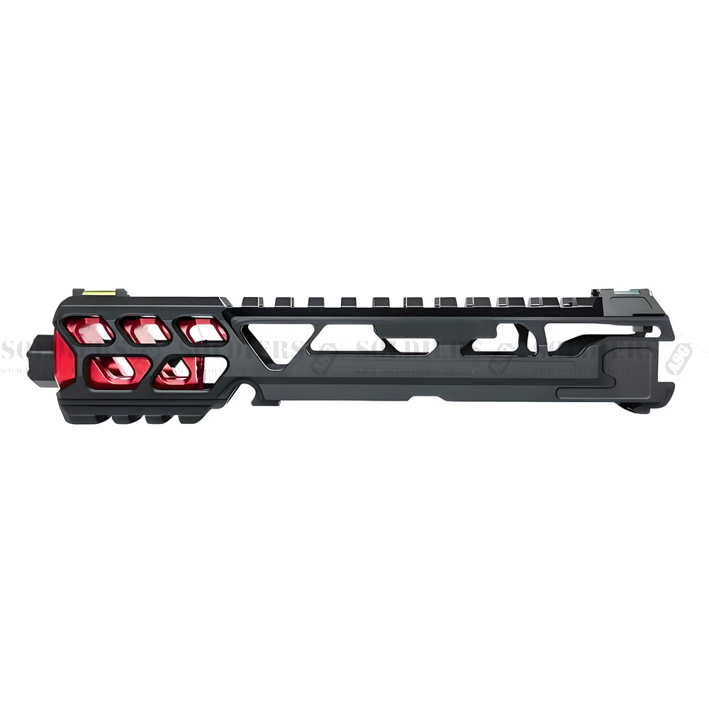 Zestaw ten nie tylko poprawia wygląd pistoletu, ale także dodaje szyny RIS dla dodatkowych akcesoriów, krótką dolną szynę RIS do latarek lub chwytów oraz długą górną szynę RIS do optyki.